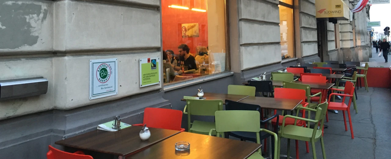 Im Weltcafé serviert man zu jeder Melange ein reines Gewissen, denn alles was hier auf den Tisch kommt, ist fair gehandelt und aus biologischem Anbau. Bio liegt voll im Trend und so sitzt der Anzugträger in der Mittagspause neben der Studentin in Öko-Hose und beide genießen das ausgezeichnete Schwammerl-Risotto. Tagsüber gibt’s hier verschiedene internationale Frühstücksvariationen, wechselnde Mittagsgerichte und guten Kaffee, am Abend empfiehlt sich ein Caipirinha mit fair gehandeltem Rohrzucker und ungespritzten Limetten. Am Wochenende gibt’s Brunch mit Prosecco.