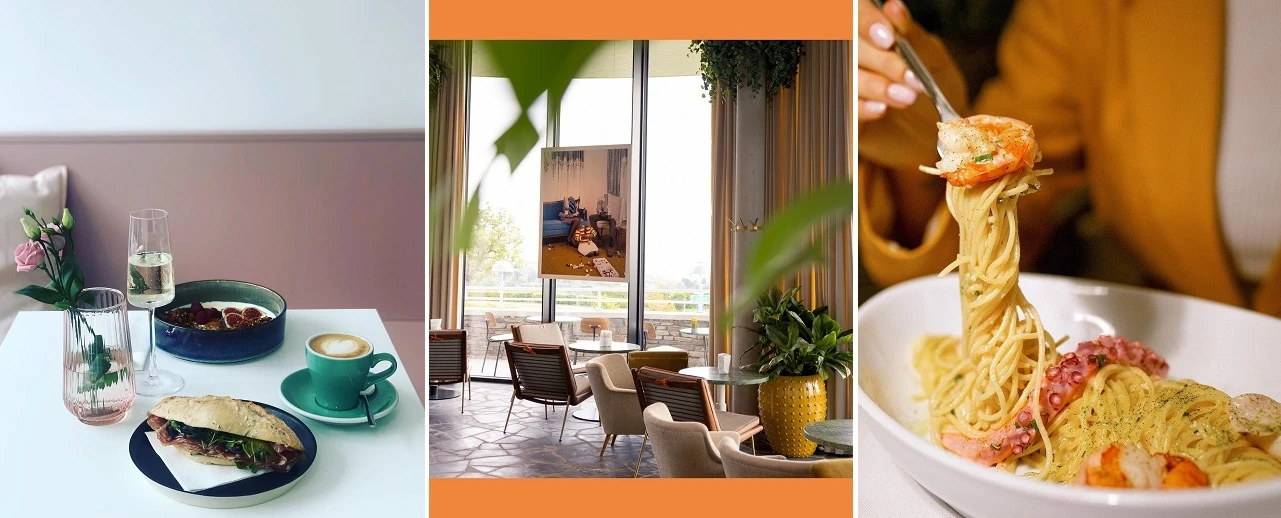 Am Cobenzl hat ein neues Café eröffnet - mit bester Aussicht auf die Stadt. Neben Kaffee kannst du hier auch speisen - es gibt österreichische, sowie internationale Gerichte und auch eine Jausen-Option. Die Einrichtung ist im Stil der 50er Jahre - Highlight ist die fesche Bar in der Mitte des Lokals.